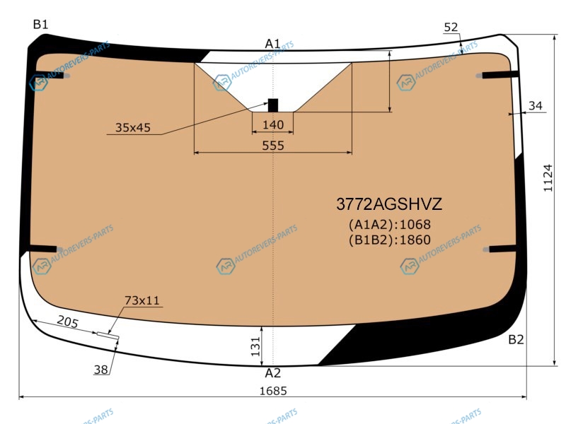 Стекло лобовое с полным обогревом FORD TRANSIT (низкаясредняя крыша) 13-