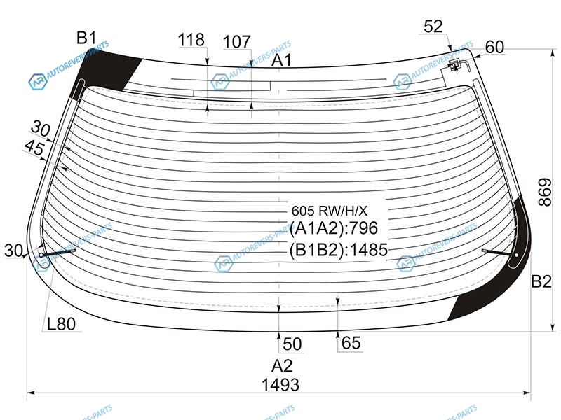 Стекло заднее с обогревом PEUGEOT 605 4D SED 89-99