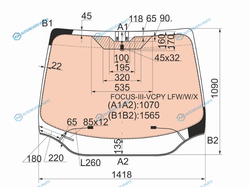 Стекло лобовое с полным обогревом FORD FOCUS III 45D 11-19