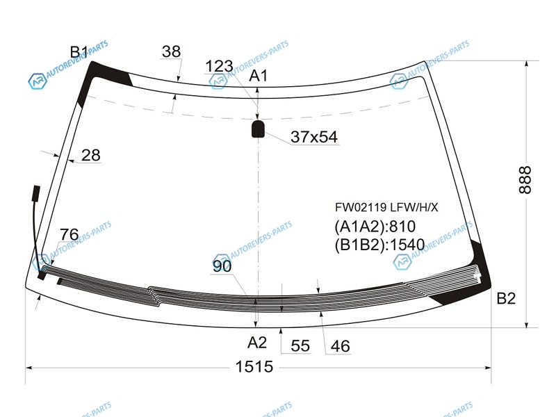 Стекло лобовое с обогревом щеток SUBARU FORESTER 97-02