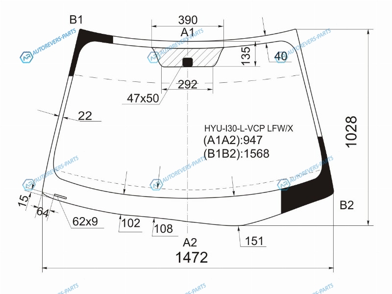 Стекло лобовое (VIN 55мм от края) HYUNDAI I30 5D 07-11