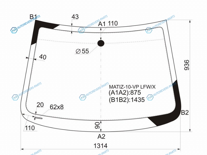 Стекло лобовое DAEWOO MATIZ III CREATIVE 09-11CHEVROLET SPARK 10-