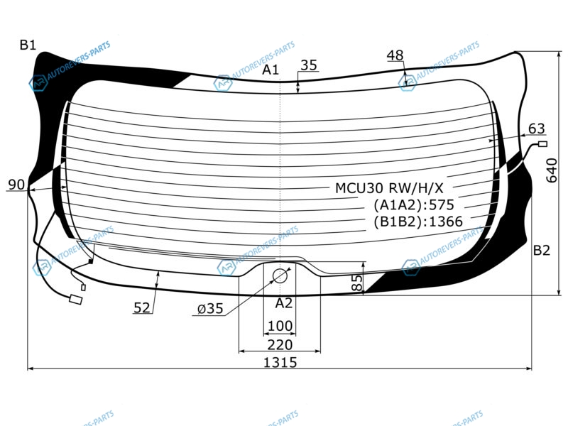 Стекло заднее с обогревом LEXUS RX300330TOYOTA HARRIER 03-09 U SPOILER