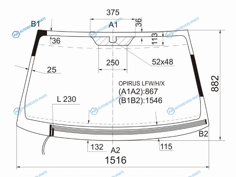 Стекло лобовое с обогревом щеток KIA OPIRUS 4D 03-10