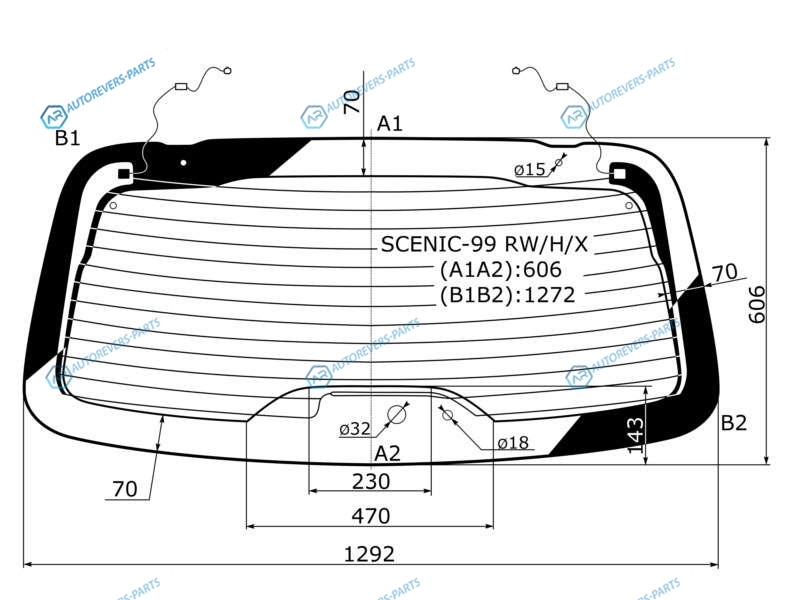 Стекло заднее с обогревом (6 отв) RENAULT SCENIC I 97-03