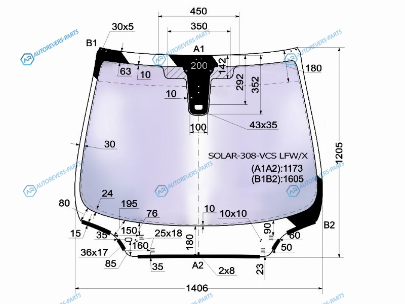 Стекло лобовое атермальное + дд PEUGEOT 308 35D 08-14 (Solar-X защита от ультрафиолета)