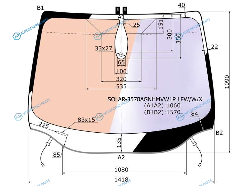 Стекло лобовое атермальное с полным обогревом + дд FORD FOCUS III 45D 11-19 (Solar-X защита)