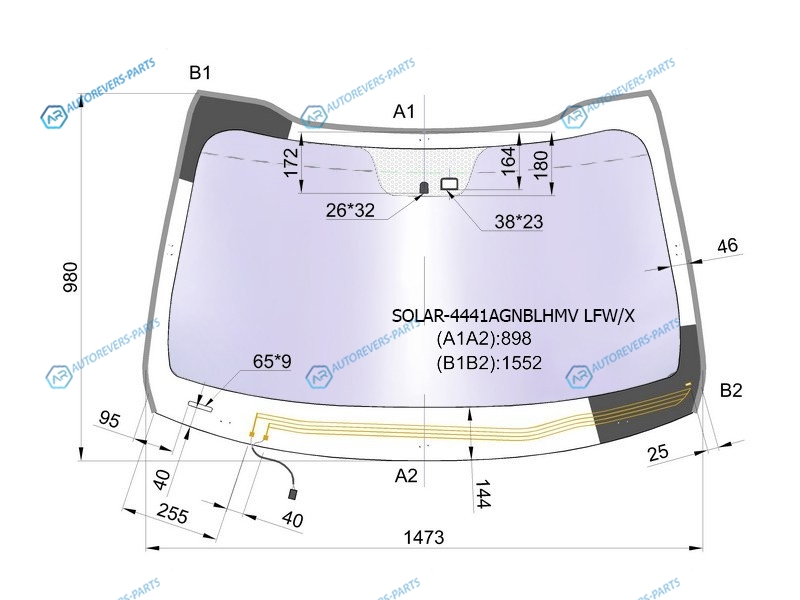 Стекло лобовое атермальное с обогревом щеток + дд KIA OPTIMA 4D 10-15 (Solar-X защита от ультрафиоле