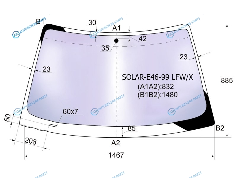 Стекло лобовое атермальное BMW 3-SERIES E46 45D 98-05 (Solar-X защита от ультрафиолета)