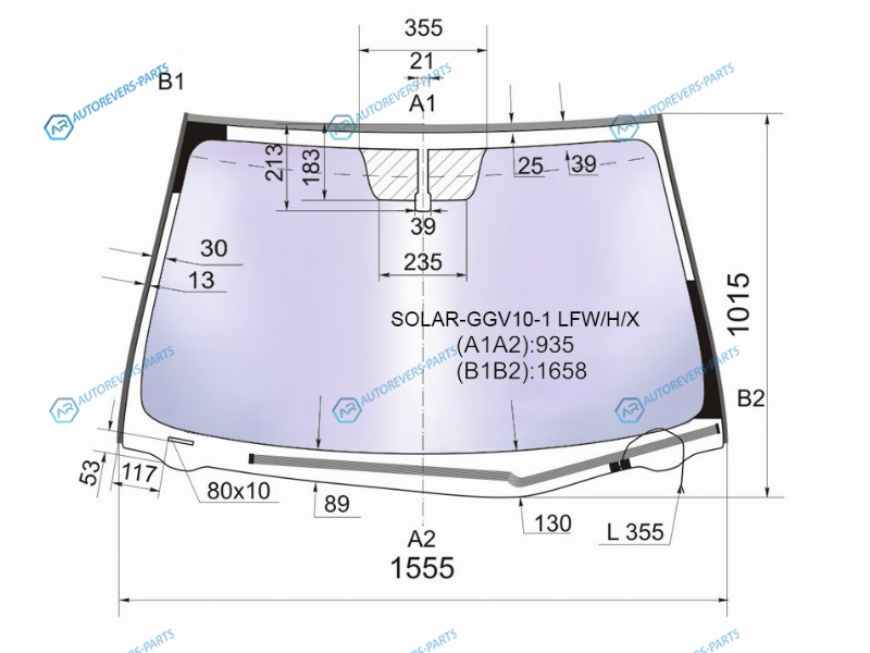 Стекло лобовое атермальное с обогревом щеток TOYOTA VENZA (PANORAMIC ROOF) 08-17 (Solar-X защита от