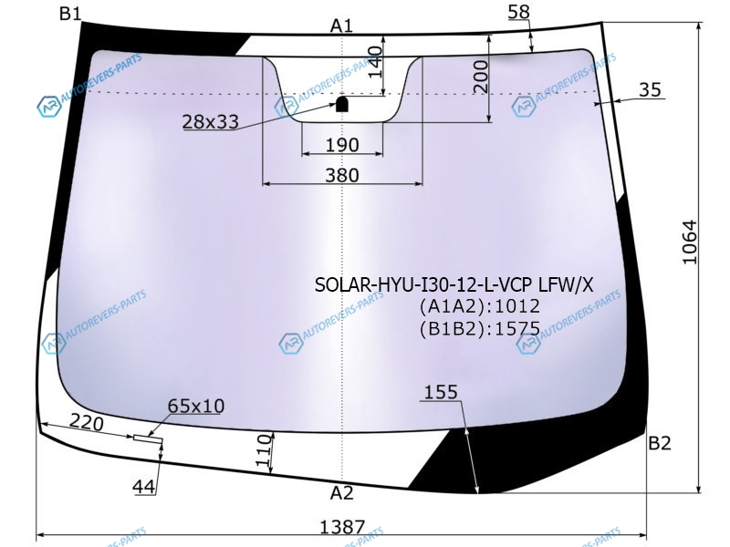 Стекло лобовое атермальное HYUNDAI i30 5D HBKWGN 12-17 (Solar-X защита от ультрафиолета)