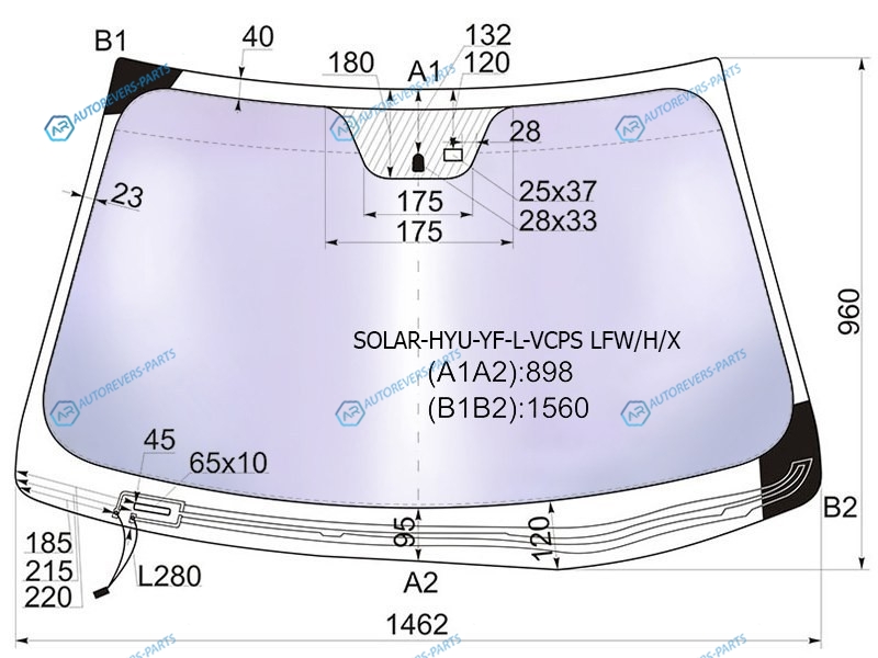 Стекло лобовое атермальное с обогревом щеток + дд HYUNDAI SONATA YF 10-14 (Solar-X защита от ультраф