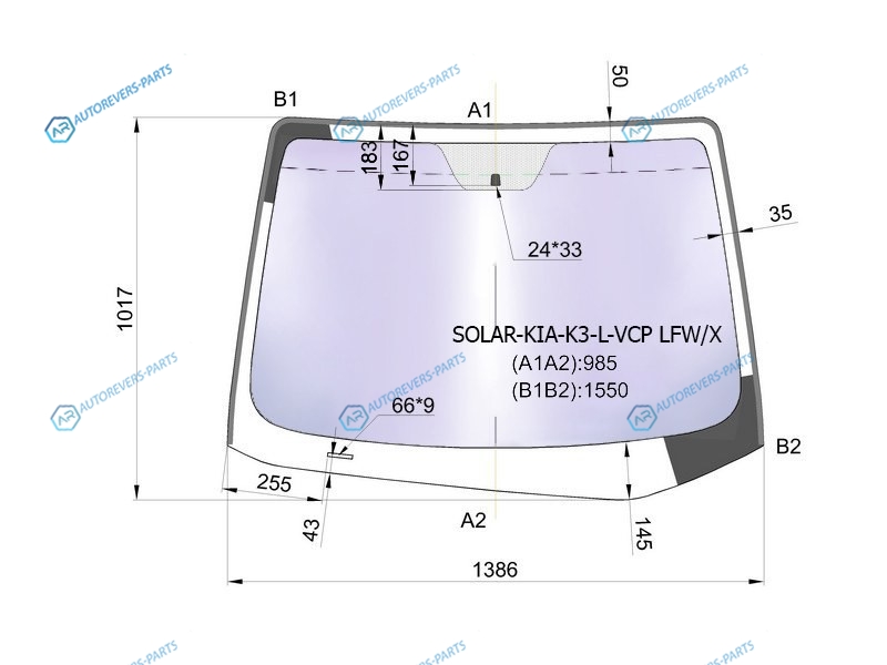 Стекло лобовое атермальное KIA CERATO 45D 12- (Solar-X защита от ультрафиолета)