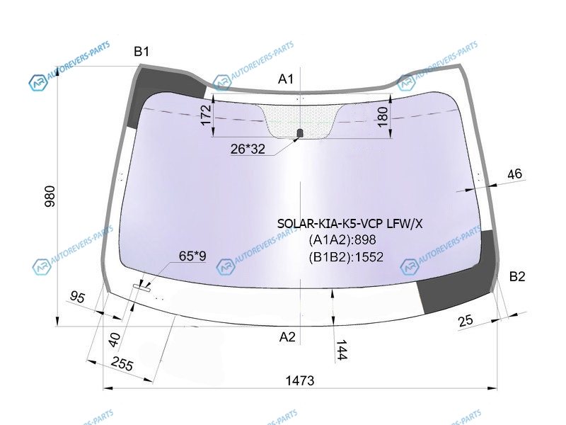 Стекло лобовое атермальное KIA OPTIMA 4D 10-15 (Solar-X защита от ультрафиолета)