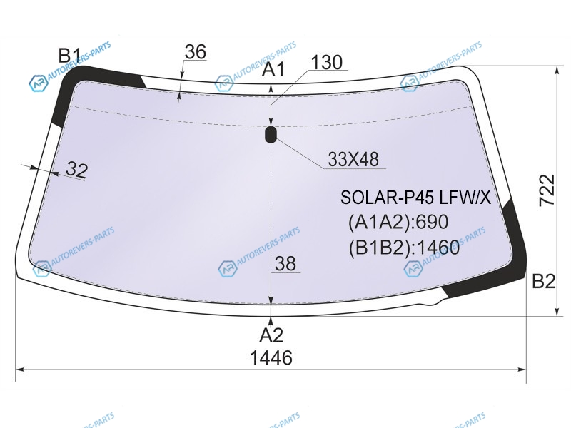 Стекло лобовое атермальное MITSUBISHI PAJERO SPORTL200 96-08 (Solar-X защита от ультрафиолета)