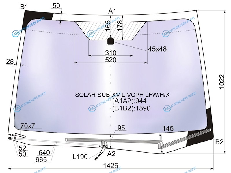 Стекло лобовое атермальное с обогревом щеток SUBARU XV 11-17SUBARU IMPREZA 45D 11-16 (Solar-X защи