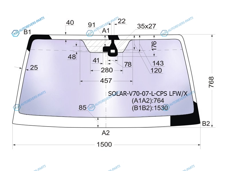 Стекло лобовое атермальное + дд MITSUBISHI PAJERO 35D 06- (Solar-X защита от ультрафиолета)