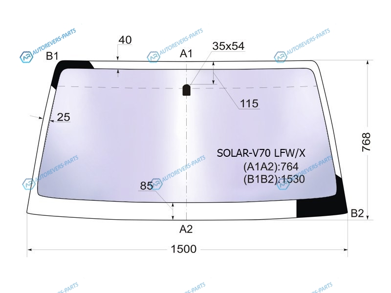 Стекло лобовое атермальное MITSUBISHI PAJERO 35D 99-06 (Solar-X защита от ультрафиолета)