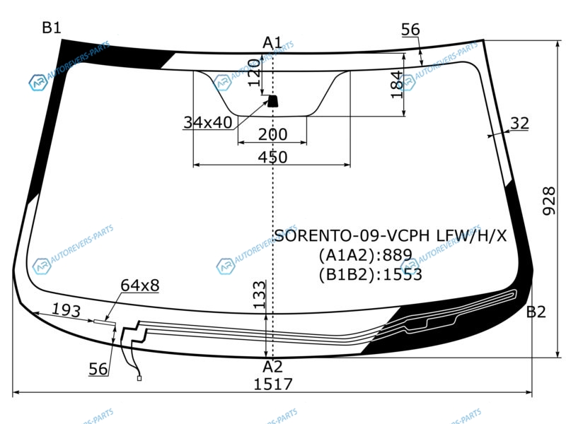 Стекло лобовое с обогревом щеток KIA SORENTO II 09-20