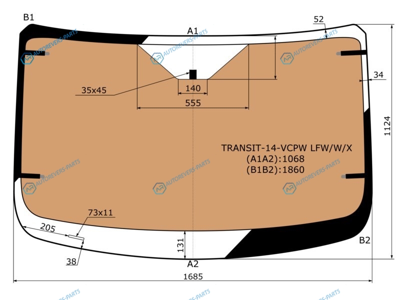 Стекло лобовое с полным обогревом FORD TRANSIT (низкаясредняя крыша) 13-