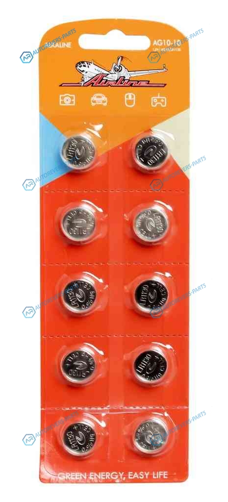 Купить AG10-10 Батарейка AG10LR1130 щелочная 10 шт. AIRLINE на автомобили и оформить заказ вы можете у нас на сайте или позвонить нашему консультанту.