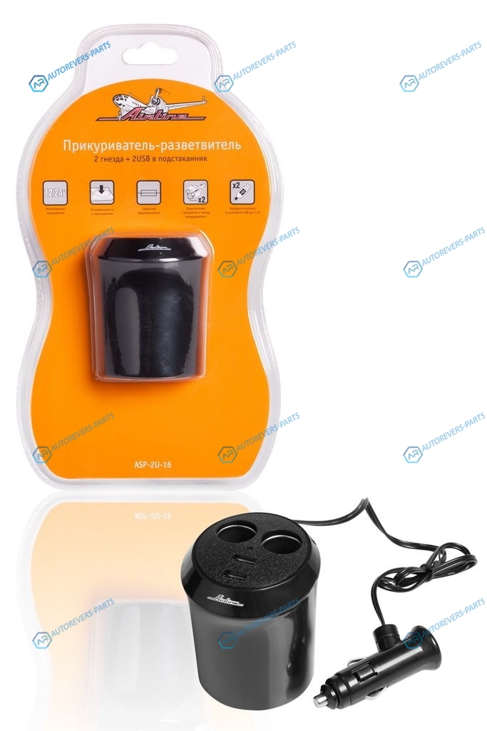 Купить ASP-2U-16 Прикуриватель-разветвитель 2 гнезда + 2USB в подстаканник AIRLINE на автомобили и оформить заказ вы можете у нас на сайте или позвонить нашему консультанту.