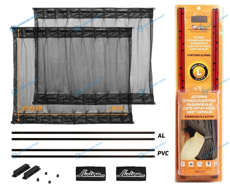 Купить ASPS-S-07 Шторки солнцезащитные раздвижные L (Д*В: 50*47-53см). цвет черный AIRLINE на автомобили и оформить заказ вы можете у нас на сайте или позвонить нашему консультанту.