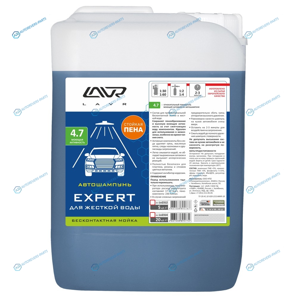 Купить LN2312 Автошампунь для бесконтактной мойки EXPERT жесткой воды 4.7 (1:50-1:70) LAVR Auto shampoo 5.7 кг LAVR на автомобили и оформить заказ вы можете у нас на сайте или позвонить нашему консультанту.
