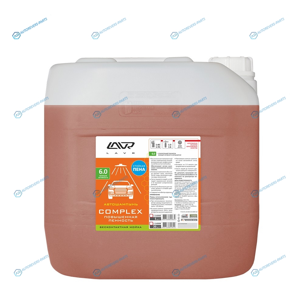Купить LN2324 Автошампунь для бесконтактной мойки COMPLEX Повышенная пенность 6.0 (1:50-70) Auto Shampoo 23.5 кг LAVR на автомобили и оформить заказ вы можете у нас на сайте или позвонить нашему консультанту.