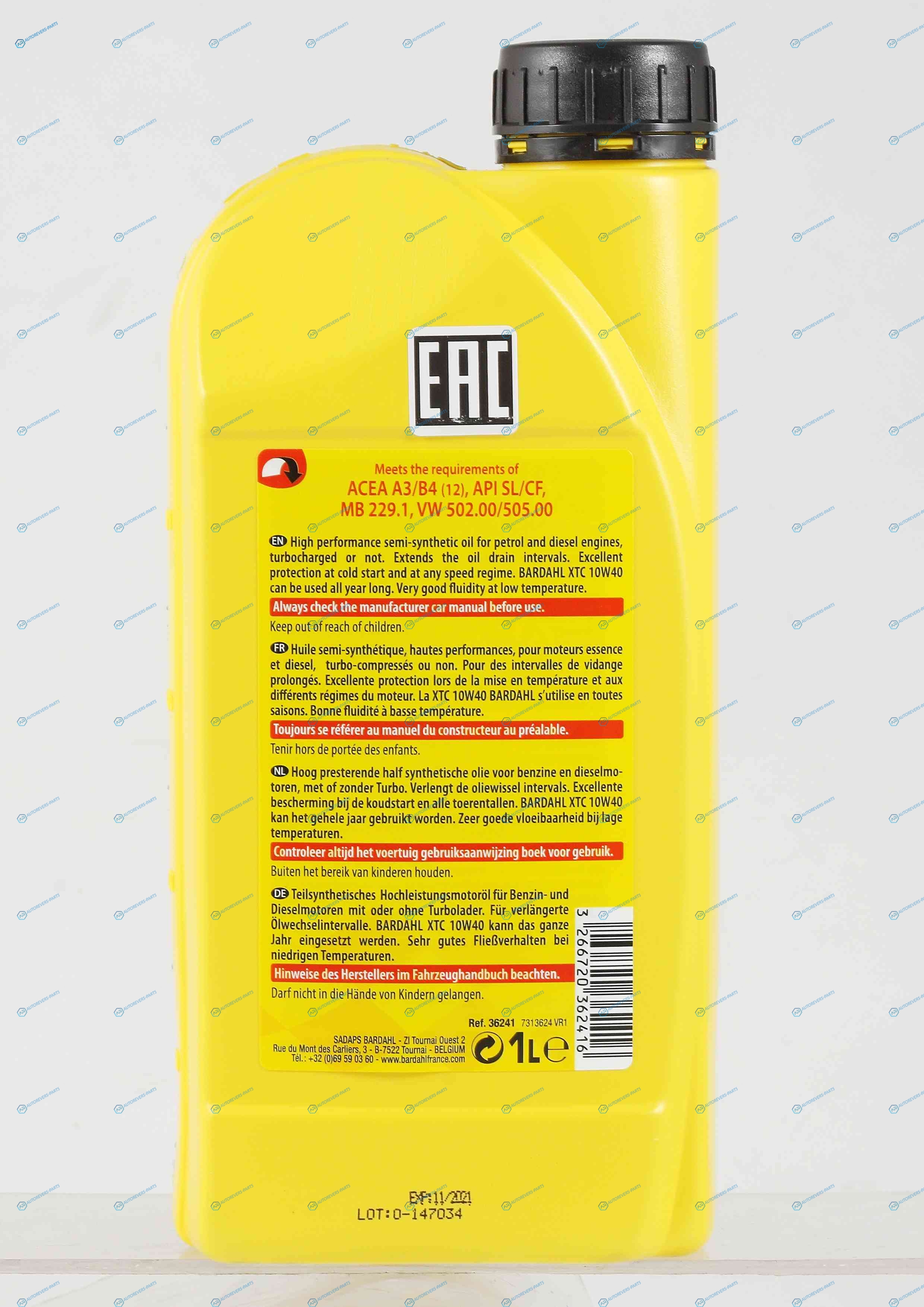 Купить 36241 10W40 XTC SNCF 1L (полусинт. моторное масло) BARDAHL на автомобили и оформить заказ вы можете у нас на сайте или позвонить нашему консультанту.