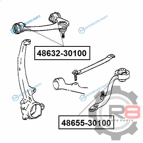 Купить 48655-30100 сайлентблок переднего косого рычага - 4WD R8 на автомобили TOYOTA [MARK 2MARK 2 BLITCHASERCRESTA] GX9JZX9LX9SX9 1992-1996TOYOTA [MARK 2MARK 2 BLITCHASERCRESTA] GX10JZX10LX10SX10 1996-2001TOYOTA [CROWNCROWN MAJESTA] UZS15GS151JZS15LS151 1995-2001TOYOTA [MARK 2MARK 2 BLITCHASERCRESTA] GX11JZX11 2000-2004TOYOTA [ALT и оформить заказ вы можете у нас на сайте или позвонить нашему консультанту.