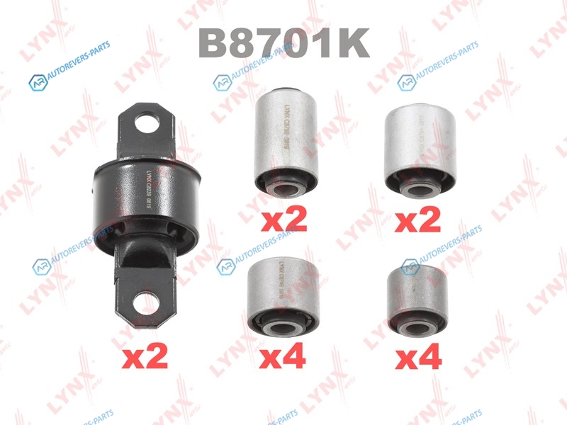 Купить B8701K Комплект сайлентблоков рычагов подвески | зад LYNXauto на автомобили и оформить заказ вы можете у нас на сайте или позвонить нашему консультанту.