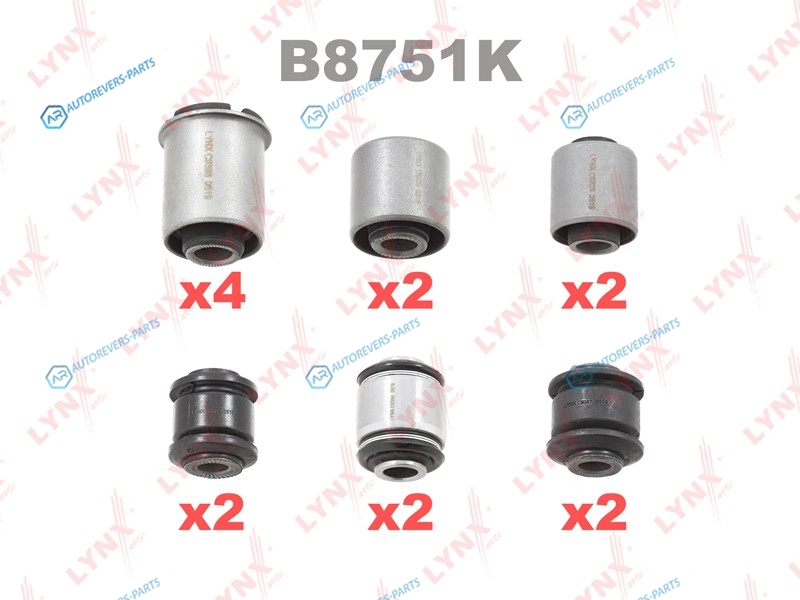 Купить B8751K Комплект сайлентблоков рычагов подвески | зад LYNXauto на автомобили и оформить заказ вы можете у нас на сайте или позвонить нашему консультанту.