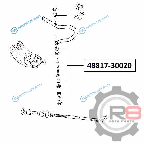 Купить 48817-30020 втулка тяги переднего заднего стабилизатора R8 на автомобили [Применимость] и оформить заказ вы можете у нас на сайте или позвонить нашему консультанту.