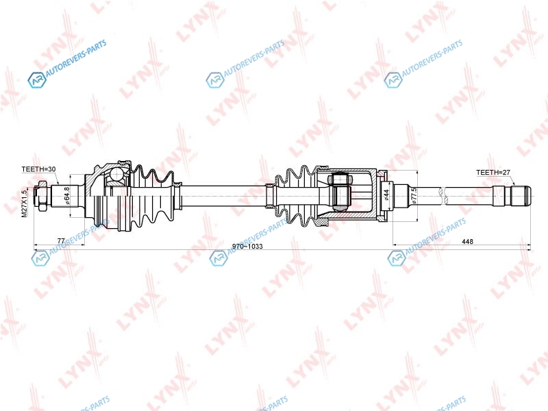 Сторона установки:справа | Внешнее зацепление со стороны колеса:30 | Внутренне зубчатое соединение со стороны колеса:27 | Диаметр прокладки [мм]:64.8 | Длина [мм]:970 | Длина 1 [мм]:77