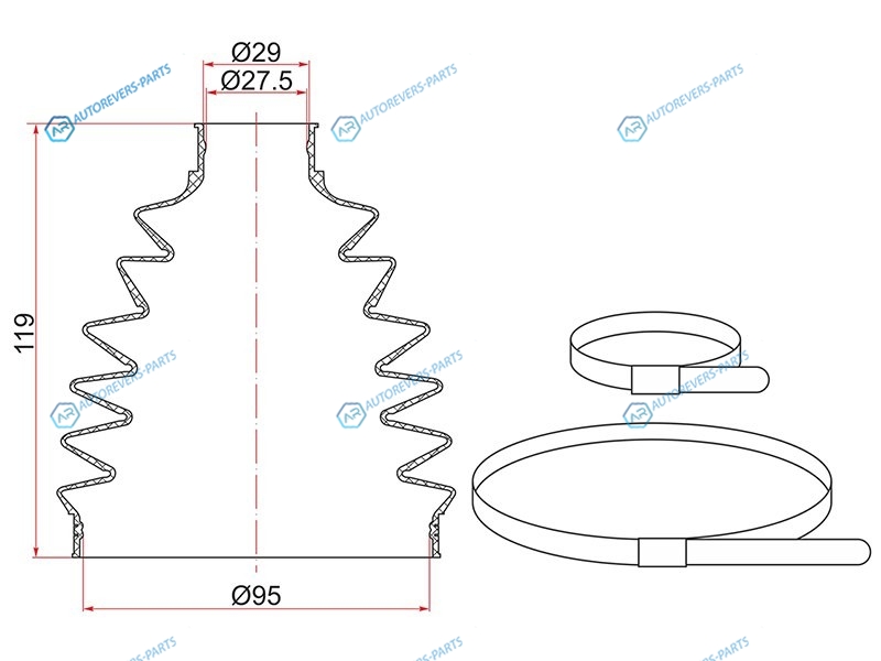 Пыльник шруса наружный FR HUYNDAI SANTA FE 06- (2 хомута. термопластик)