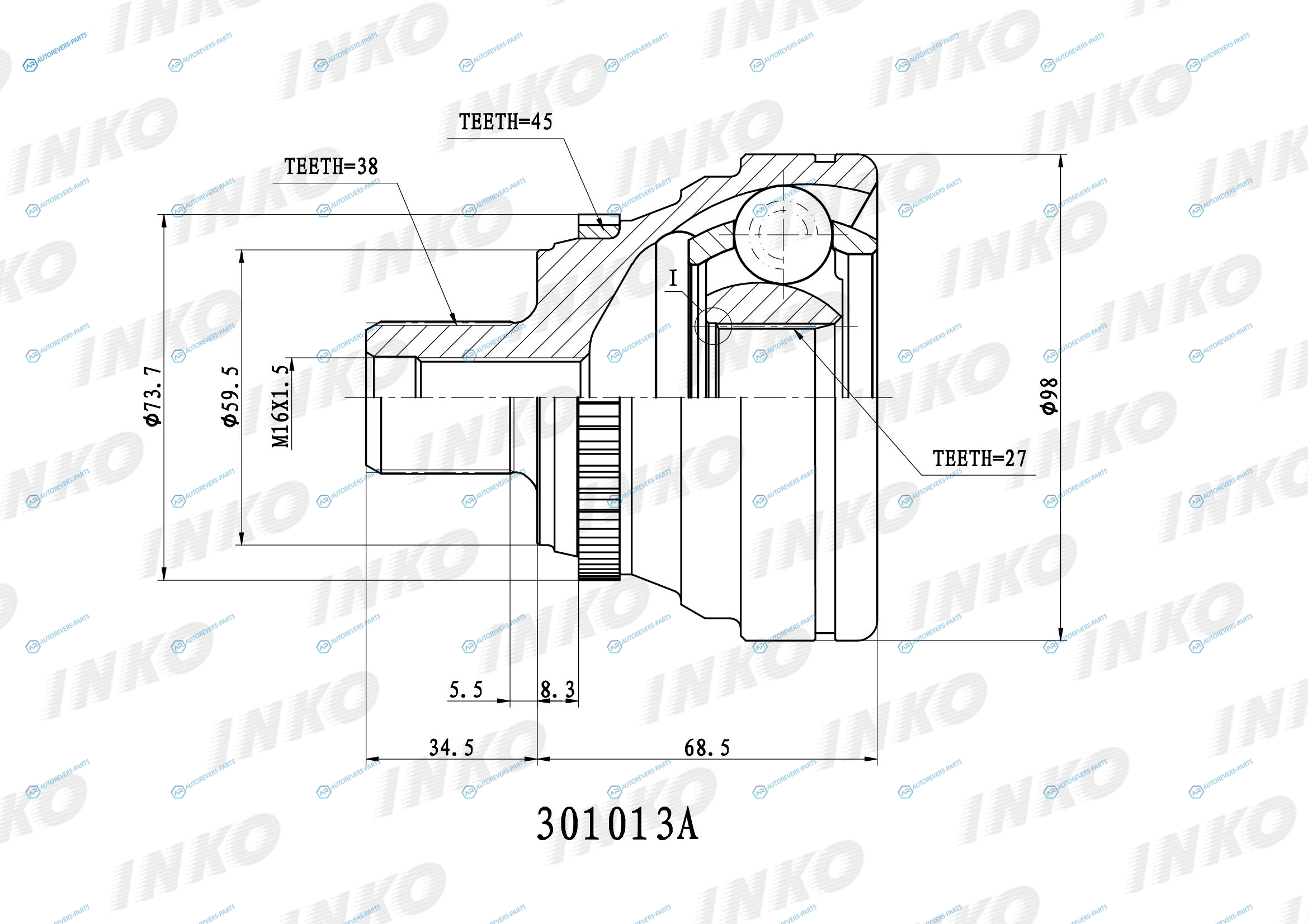 301013A ШРУС внешний 3827 ABS 45