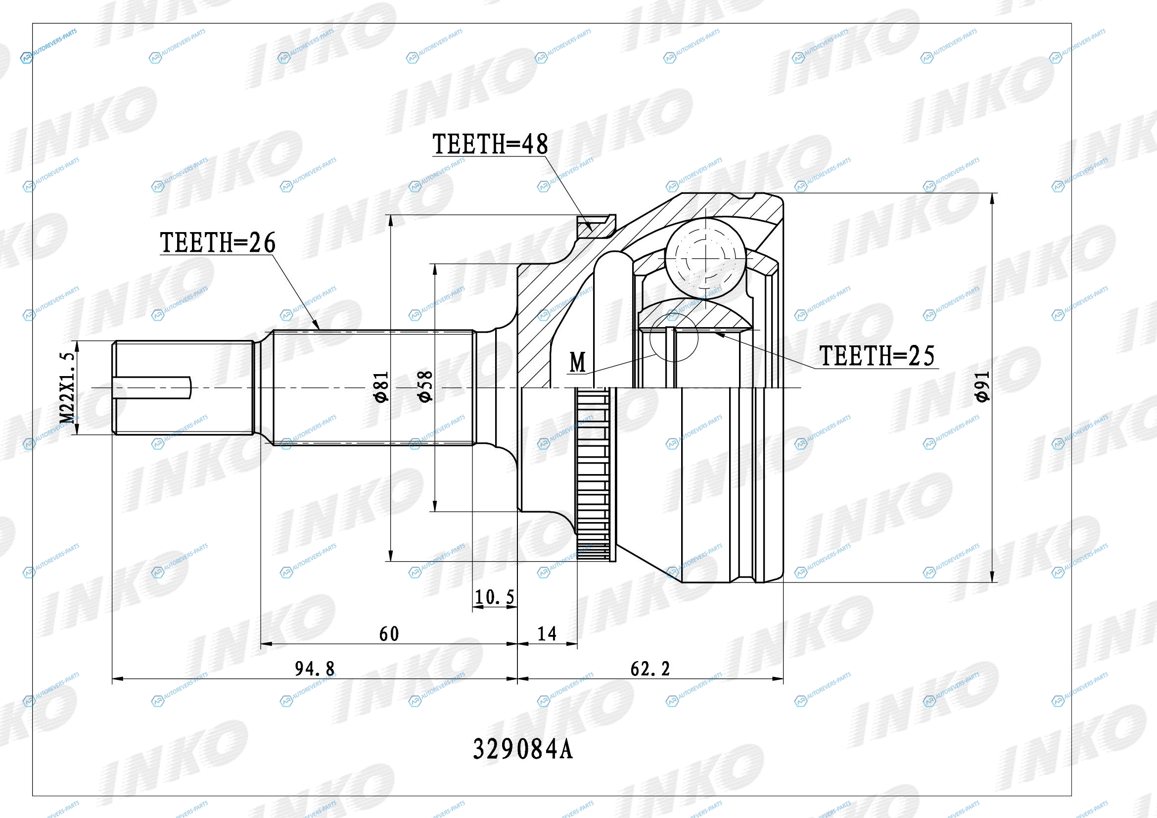 329084A ШРУС внешний 2625 ABS 48