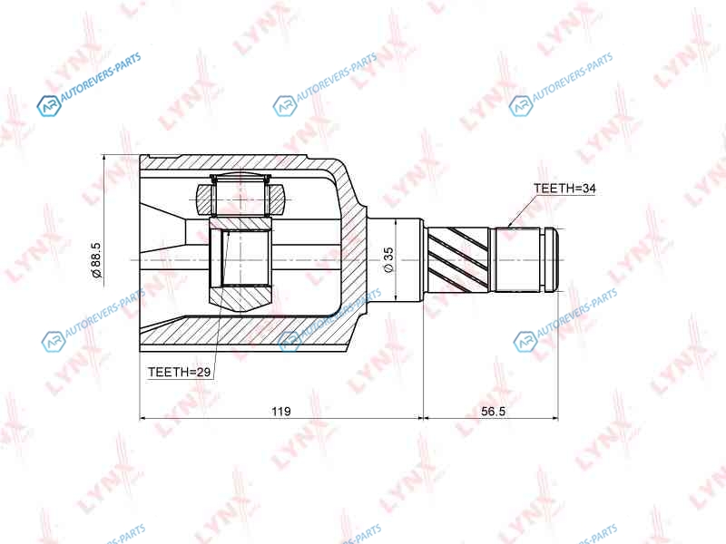 Сторона установки:со стороны коробки передач | Внешнее зацепление со стороны дифференциала:34 | Внутреннее зубчатое соединение со стороны дифференциала:29 | Диаметр прокладки [мм]:35 | Длина [мм]:175.4 | Длина 1 [мм]:56.5 | Длина 2 [мм]:119