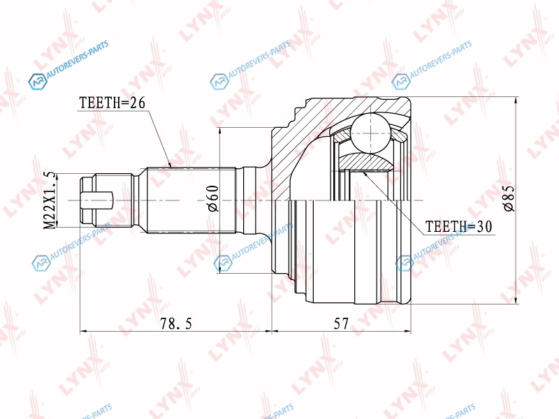 Сторона установки:со стороны колеса | Сторона установки:передний мост | Внешнее зацепление со стороны колеса:26 | Внутренне зубчатое соединение со стороны колеса:30 | Диаметр прокладки [мм]:60 | Длина [мм]:135.5 | Длина 1 [мм]:78.5 | Длина 2 [мм]:57 | Спецификация:Middle Groove
