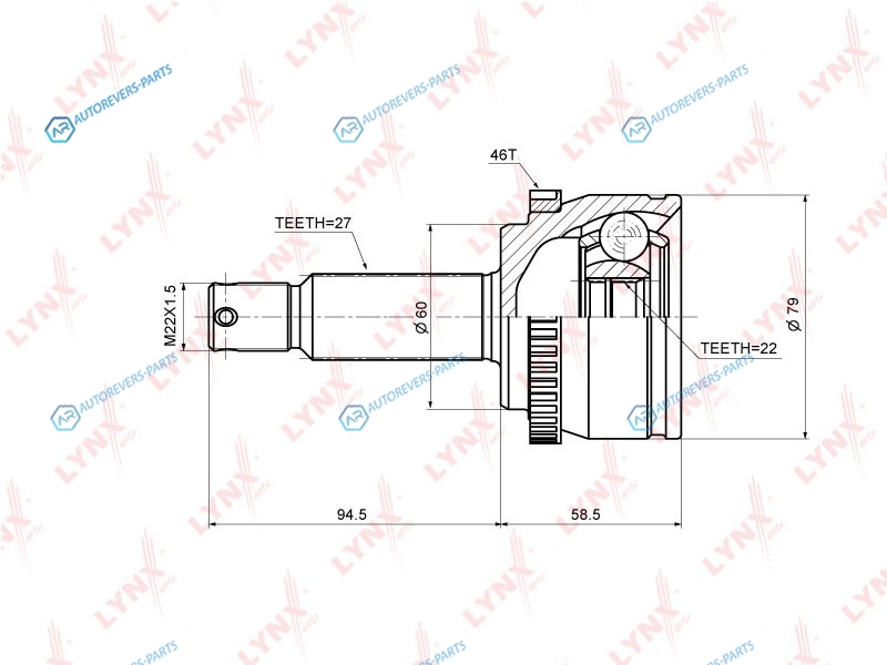 Сторона установки:со стороны колеса | Внешнее зацепление со стороны колеса:27 | Внутренне зубчатое соединение со стороны колеса:22 | Диаметр прокладки [мм]:60 | Число зубцов кольца ABS:46 | Длина [мм]:153 | Длина 1 [мм]:94.5 | Длина 2 [мм]:58.5 | Спецификация:Middle Groove | Высота [мм]:200 | Глубина [мм]:120 | Ширина [мм]:120