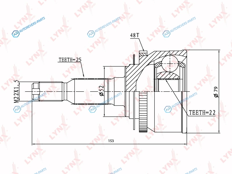 Сторона установки:со стороны колеса | Внешнее зацепление со стороны колеса:25 | Внутренне зубчатое соединение со стороны колеса:22 | Диаметр прокладки [мм]:52.5 | Число зубцов кольца ABS:48 | Длина [мм]:153 | Длина 1 [мм]:95 | Длина 2 [мм]:58 | Спецификация:Middle Groove | Высота [мм]:200 | Глубина [мм]:116 | Ширина [мм]:116