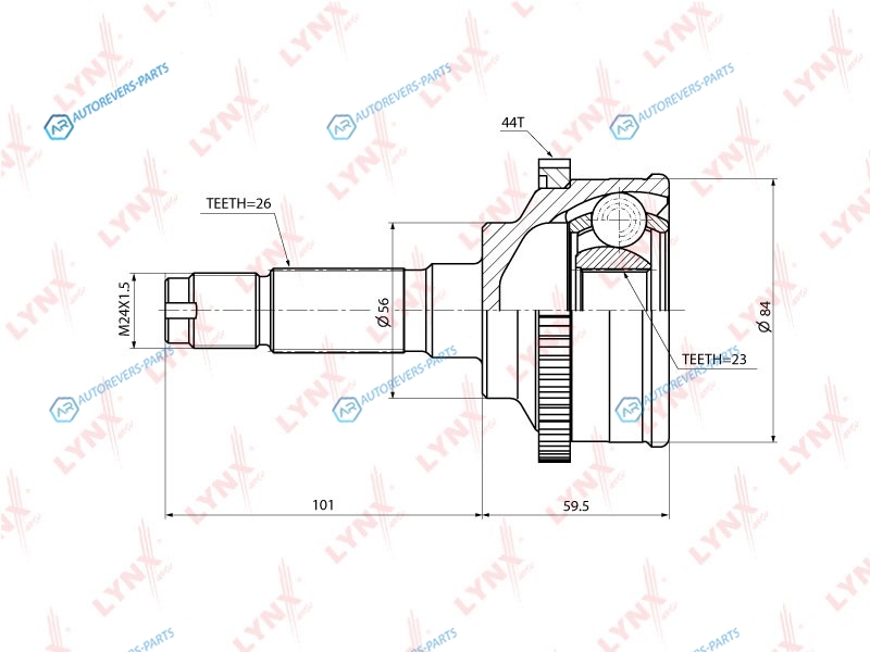 Сторона установки:со стороны колеса | Внешнее зацепление со стороны колеса:26 | Внутренне зубчатое соединение со стороны колеса:23 | Диаметр прокладки [мм]:56 | Число зубцов кольца ABS:44 | Длина [мм]:160.5 | Длина 1 [мм]:101 | Длина 2 [мм]:59.5 | Спецификация:Inner Groove