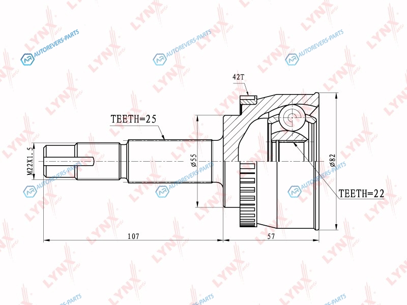 Сторона установки:со стороны колеса | Сторона установки:передний мост | Внешнее зацепление со стороны колеса:25 | Внутренне зубчатое соединение со стороны колеса:22 | Диаметр прокладки [мм]:55 | Число зубцов кольца ABS:42 | Длина [мм]:164 | Длина 1 [мм]:107 | Длина 2 [мм]:57 | Спецификация:Middle Groove | Высота [мм]:120 | Глубина [мм]:200 | Ширина [мм]:120