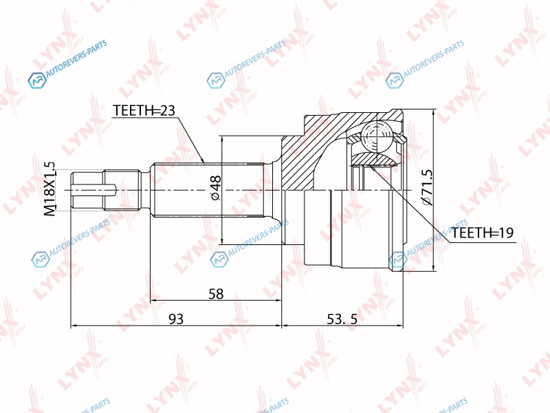 Сторона установки:со стороны колеса | Внешнее зацепление со стороны колеса:23 | Внутренне зубчатое соединение со стороны колеса:19 | Диаметр прокладки [мм]:48 | Длина [мм]:146.5 | Длина 1 [мм]:93 | Длина 2 [мм]:53.5 | Спецификация:Middle Groove