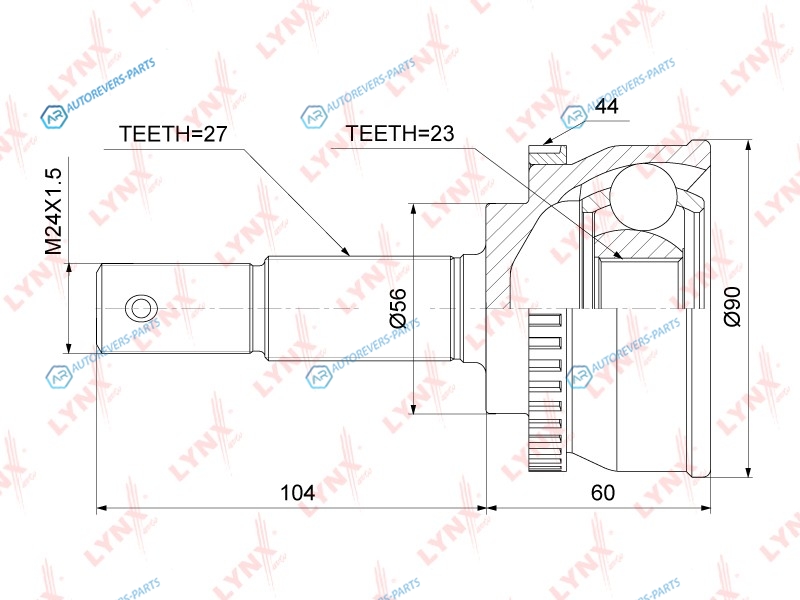 Сторона установки:со стороны колеса | Внешнее зацепление со стороны колеса:27 | Внутренне зубчатое соединение со стороны колеса:23 | Диаметр прокладки [мм]:56 | Число зубцов кольца ABS:44 | Длина [мм]:164 | Длина 1 [мм]:104 | Длина 2 [мм]:60 | Спецификация:Inner Groove