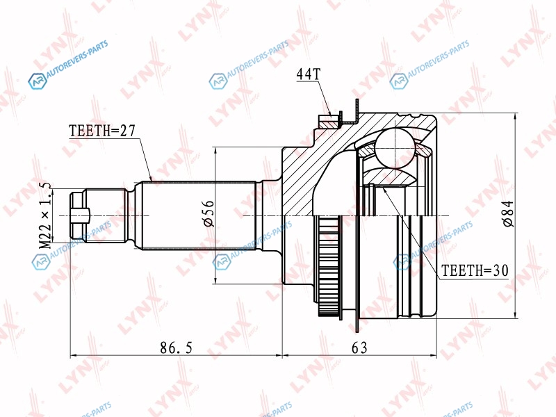 Сторона установки:со стороны колеса | Сторона установки:передний мост | Внешнее зацепление со стороны колеса:27 | Внутренне зубчатое соединение со стороны колеса:30 | Диаметр прокладки [мм]:56 | Число зубцов кольца ABS:44 | Длина [мм]:149.5 | Длина 1 [мм]:86.5 | Длина 2 [мм]:63 | Спецификация:Middle Groove | Высота [мм]:200 | Глубина [мм]:120 | Ширина [мм]:120