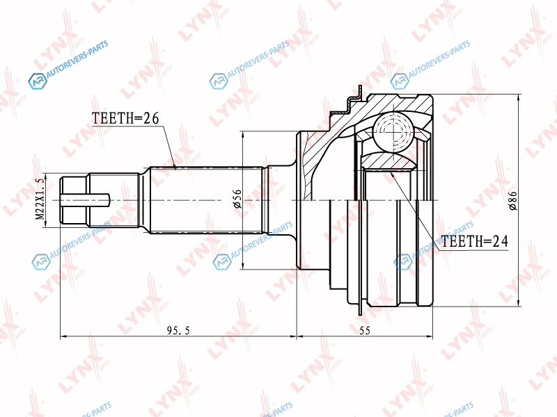 Сторона установки:со стороны колеса | Сторона установки:передний мост | Внешнее зацепление со стороны колеса:26 | Внутренне зубчатое соединение со стороны колеса:24 | Диаметр прокладки [мм]:56 | Длина [мм]:150.5 | Длина 1 [мм]:95.5 | Длина 2 [мм]:55 | Спецификация:Inner Groove | Высота [мм]:200 | Глубина [мм]:120 | Ширина [мм]:120