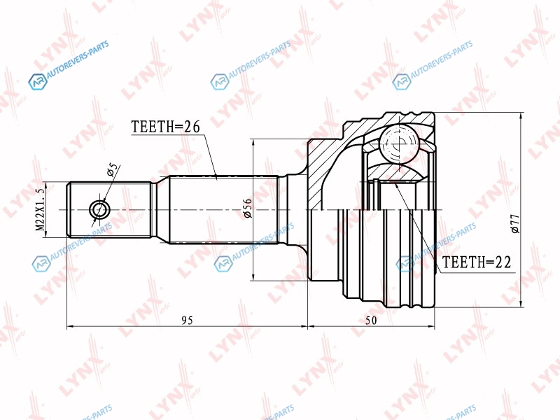 Сторона установки:со стороны колеса | Внешнее зацепление со стороны колеса:26 | Внутренне зубчатое соединение со стороны колеса:22 | Диаметр прокладки [мм]:56 | Длина [мм]:145 | Длина 1 [мм]:95 | Длина 2 [мм]:50 | Спецификация:Middle Groove