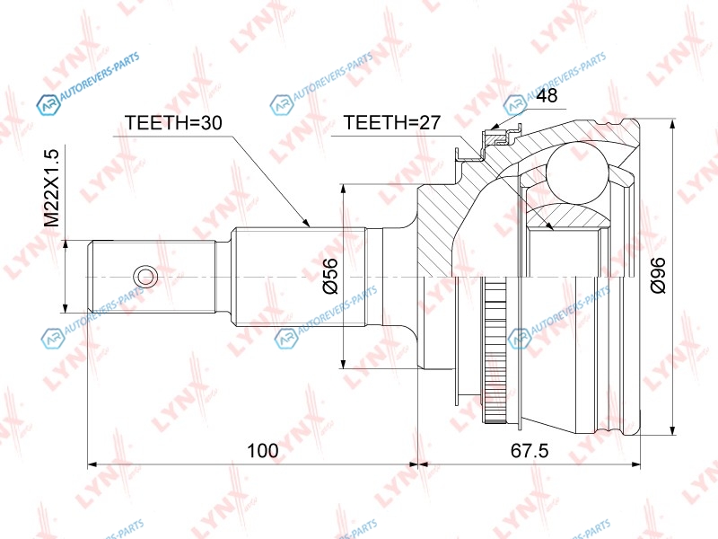 Сторона установки:со стороны колеса | Внешнее зацепление со стороны колеса:30 | Внутренне зубчатое соединение со стороны колеса:27 | Диаметр прокладки [мм]:56 | Число зубцов кольца ABS:48 | Длина [мм]:167.5 | Длина 1 [мм]:100 | Длина 2 [мм]:67.5 | Спецификация:Inner Groove | Высота [мм]:120 | Глубина [мм]:120 | Ширина [мм]:200